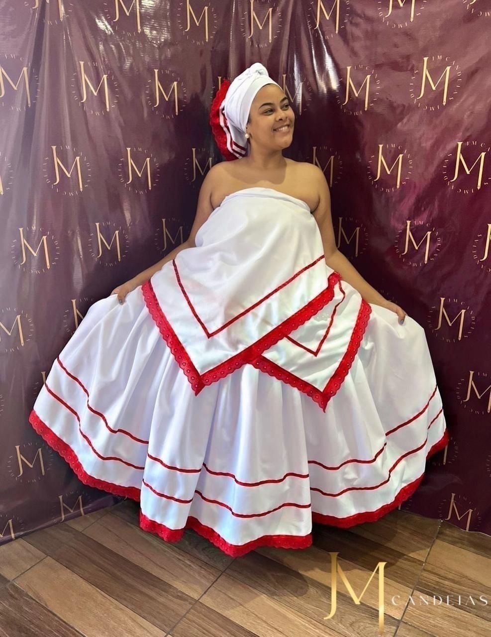 Conjunto tradicional de baiana na cor vermelha, confeccionado em tecido Oxford, ideal para rituais religiosos, saídas de santo, festas litúrgicas e homenagens às orixás.